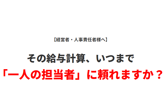 給与計算業務が担当者任せになってしまっていて、退職した場合に明日から計算できる人がいない。採用できない。